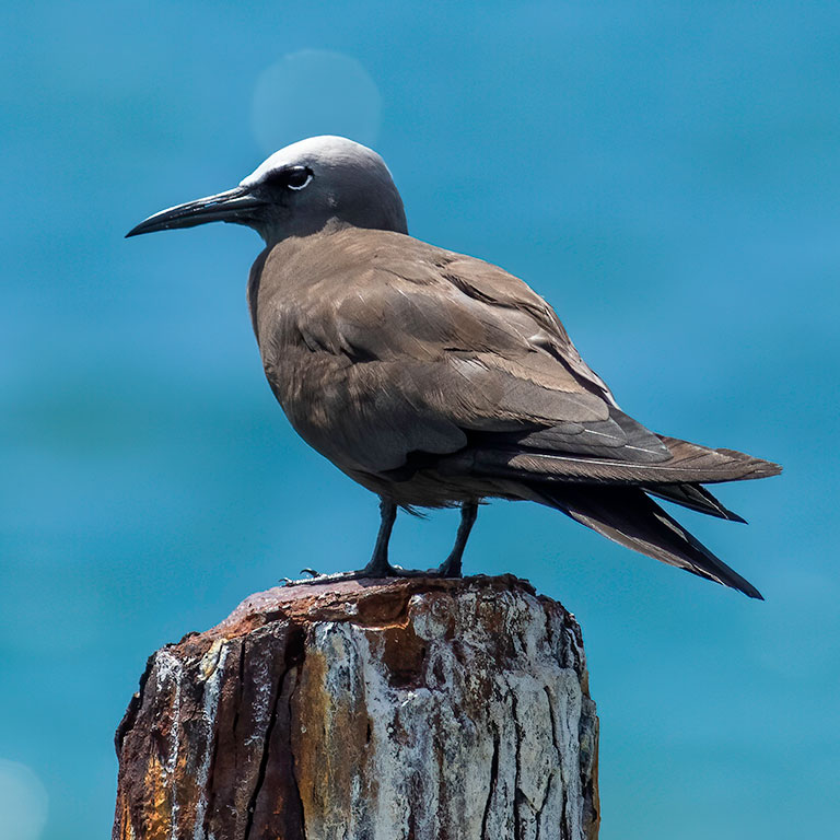 Brown noddy terns perching on the old 1898 coal dock pilings which are an awesome place to snorkel!